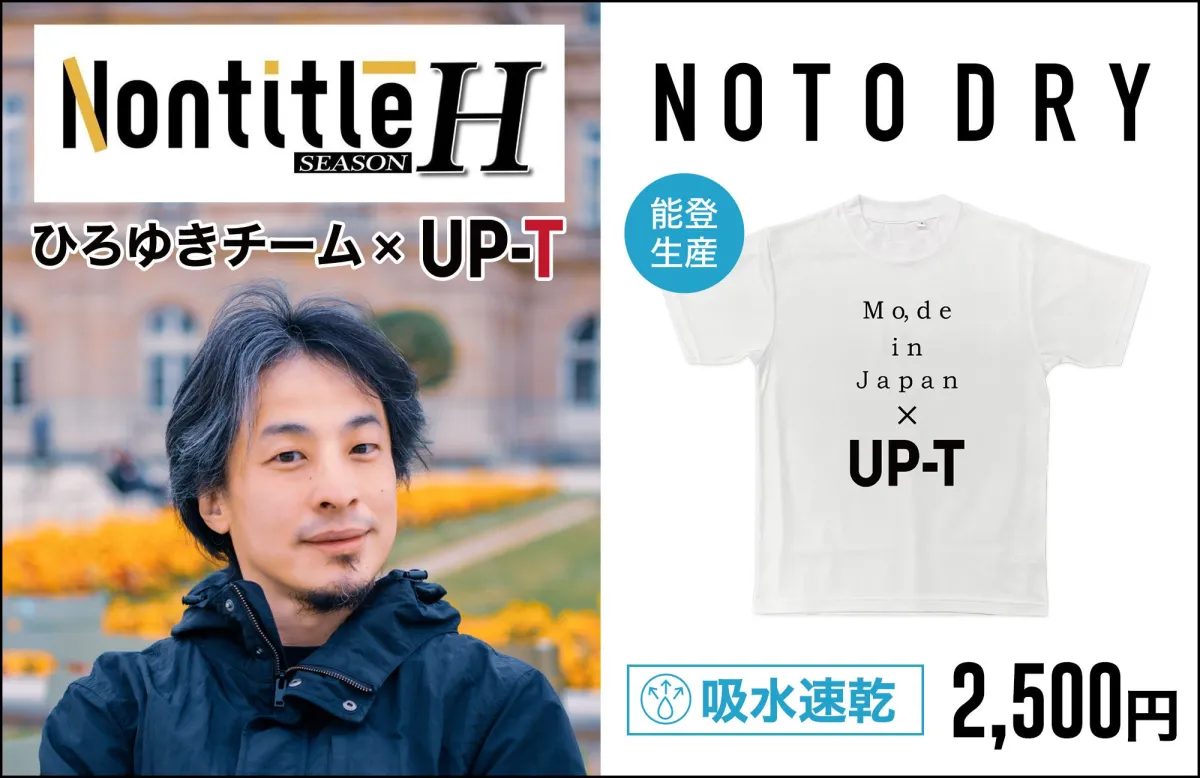 最近、ビジネスリアリティ番組『Nontitle』から生まれた新たなコラボ商品が話題になっています。YouTubeで展開されている『Nontitle SEASON H』の企画「ヒカル vs. ひろゆき 売上バトル」から誕生したNOTO DRY Tシャツが、その製品名です。このTシャツは、UP-Tというオリジナルグッズ作成プラットフォームを運営する丸井織物株式会社からリリースされました。