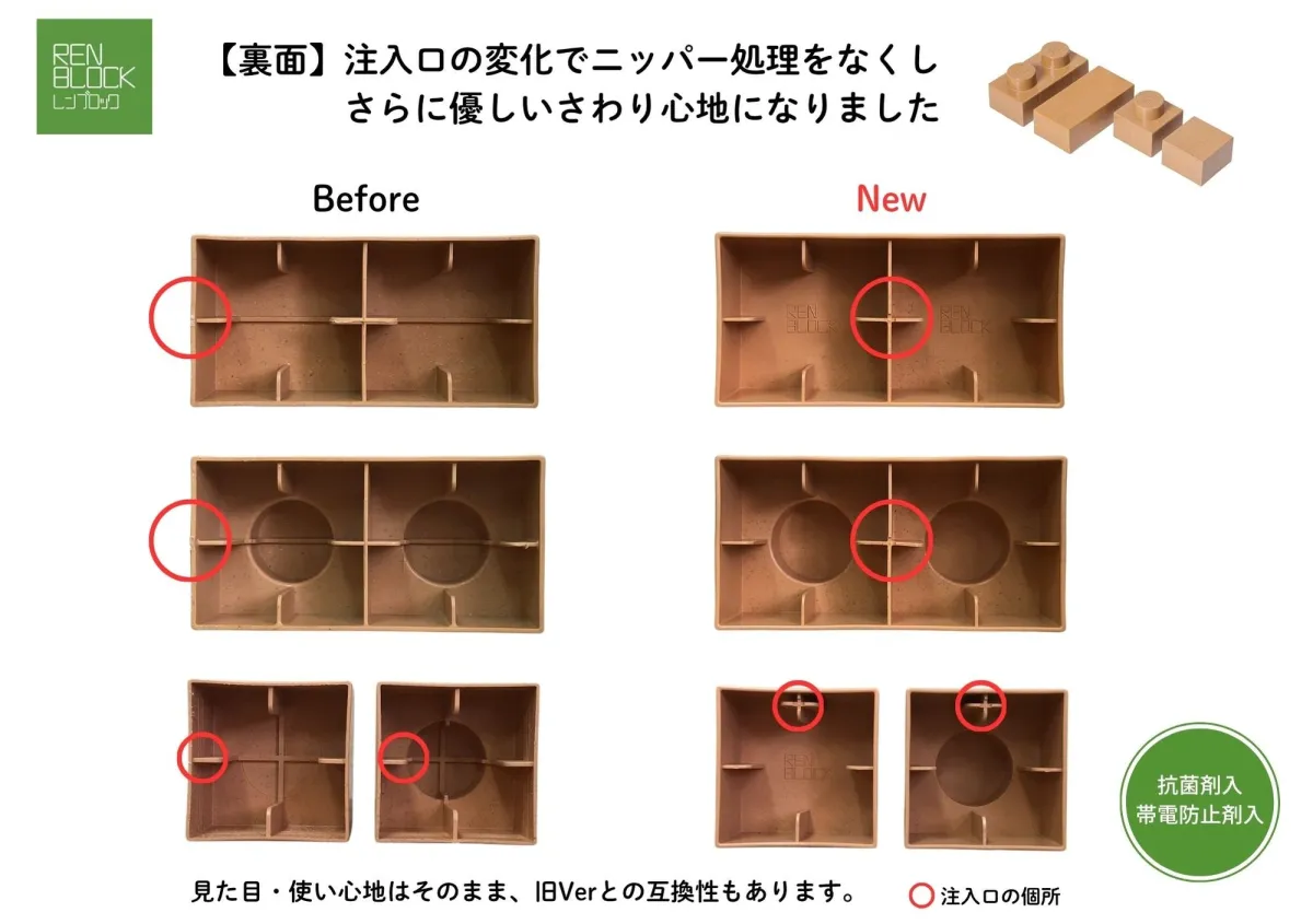 さらなる進化として、今後は全パーツの裏面に「RENBLOCK」のロゴが刻印されることが決まりました。これにより、模倣品との違いを明確にし、正規品としての信頼性を強化しています。