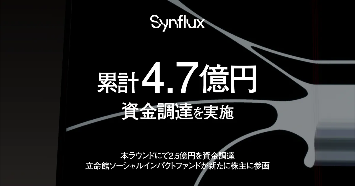 Synflux株式会社(シンフラックス)、代表の川崎和也が率いるこの企業は、最新の資金調達ラウンドにおいて2.5億円を調達しました。この調達は、Goldwin Play Earth Fundがリード投資家となり、立命館ソーシャルインパクトファンド、mint、MTG Venturesといった新たな株主の参加を得て行われました。この結果、同社の累計調達額は4.7億円となります。