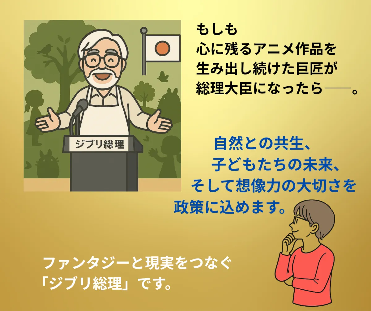 新しい社会の在り方を提案するユーモア風刺シリーズ「妄想総理」の最新巻がリリースされます。著者のひらかわゆうきが目指すのは、未来の子どもたちが政治の中心に位置する新たな社会。今回は、人気作品であるジブリのキャラクターたちが揃い、夢のある未来を描き出します。