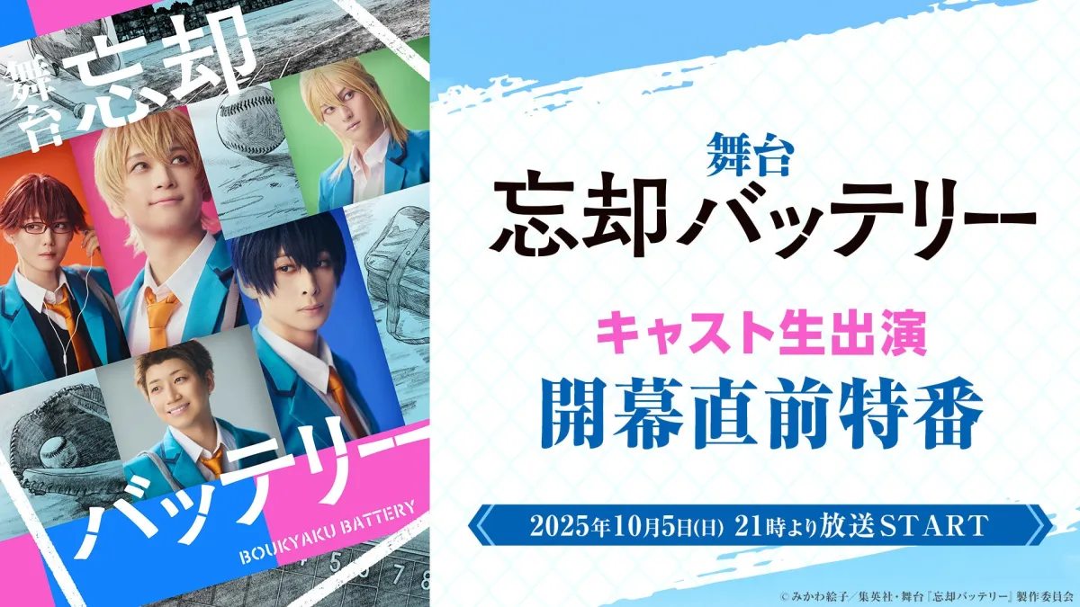 2025年、秋。期待が高まる舞台「忘却バッテリー」の開幕直前特番が、10月5日(日)21時より、ニコニコ生放送にて配信されることが発表されました。この特番では、本作の魅力を持つキャストたちが生出演し、作品の詳細を視聴者に届けます。