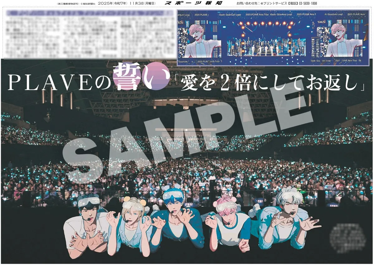 今回のPLAVEの紙面は、特に日本初の単独公演に関する特集です。この公演は、PLAVEの日本への本格進出を象徴するものとして、国内外のファンから注目を集めていました。紙面では、その様子を迫力のある大きな写真とともに紹介しています。