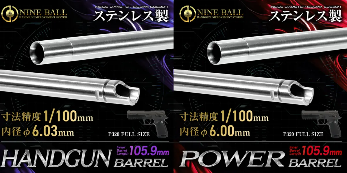 新しく登場するインナーバレルは、内径6.00mmの「パワーバレル」と、内径6.03mmの「ハンドガンバレル」の2種類。どちらも105.9mmの長さで設計されており、ステンレス素材を使用して高い安定性を実現しています。これにより、さまざまなプレイスタイルに応じた選択が可能になっています。