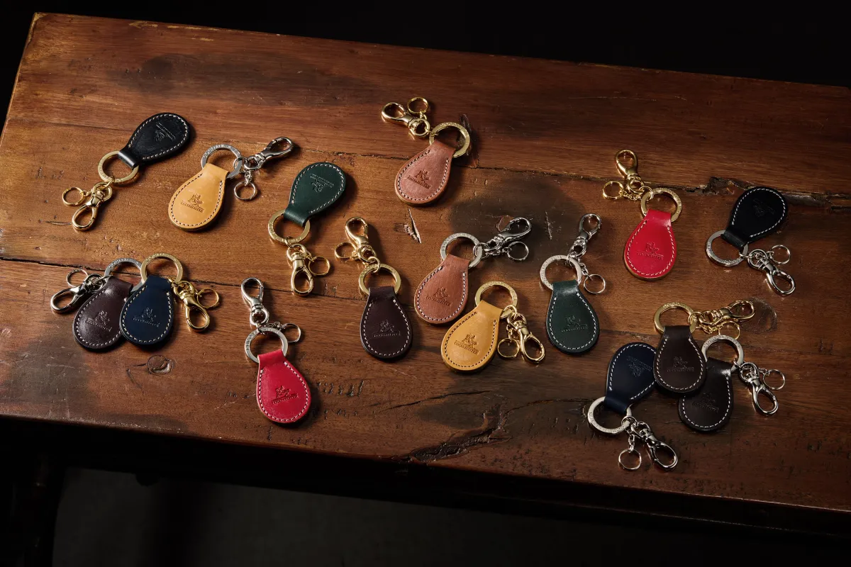 このキーリングは、英国で1,000年以上の歴史を持つ高級馬具用革「ブライドルレザー」を使用。伝統技術により、繊維の奥にロウを浸透させることで、高い強度と美しい光沢を実現しています。この重厚感と上品さは、英国文化の気品を感じさせるものです。