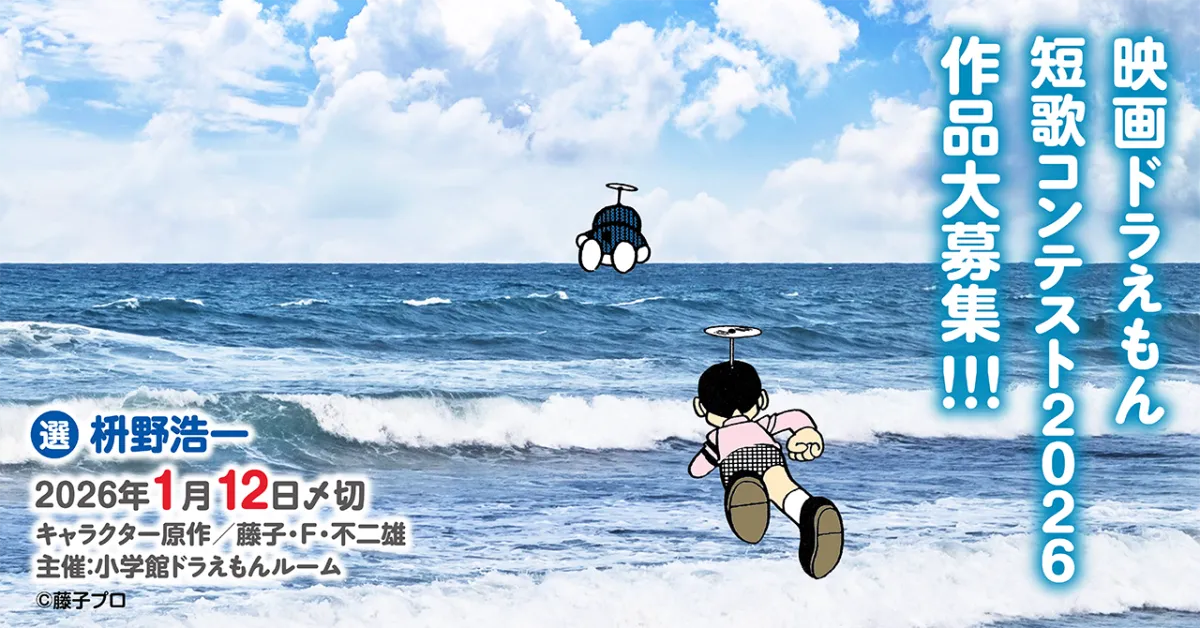 2025年の夏、大きな反響を呼んだ「ドラえもん短歌コンテスト」が再び開催されます。新たなテーマは『映画 ドラえもん』。1980年の初公開以来、数々の映画作品が生まれてきた「ドラえもん」。その中での思い出や、来る2026年2月27日の最新作『映画ドラえもん 新・のび太の海底鬼岩城』への期待を短歌に込めるチャンスです。