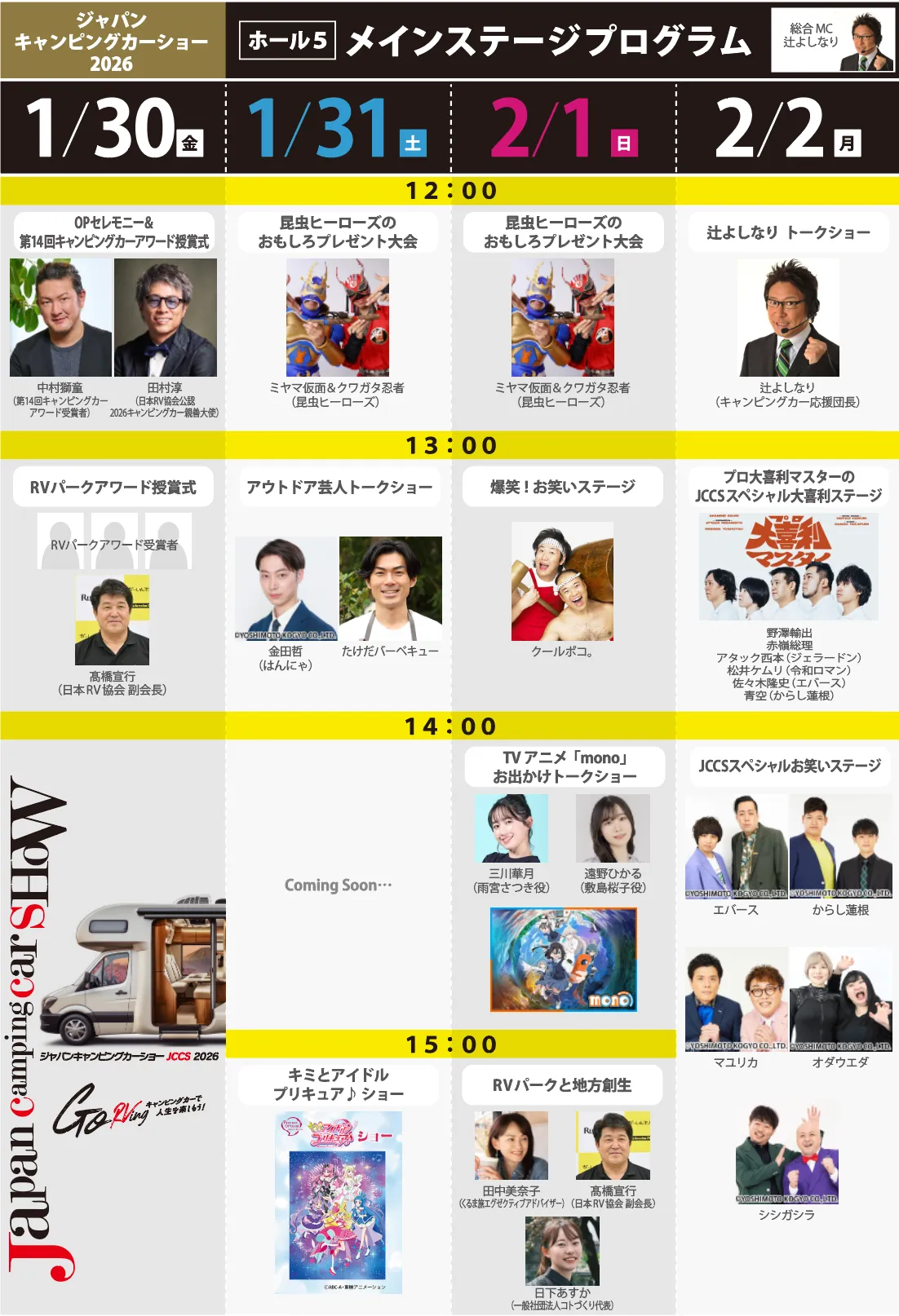 2026年1月30日(金)から2月2日(月)までの4日間、幕張メッセで開催される「ジャパンキャンピングカーショー2026」。このイベントでは、多彩なステージプログラムが用意され、ファミリー層をターゲットにした役立つ情報やエンターテインメントが盛りだくさんです。