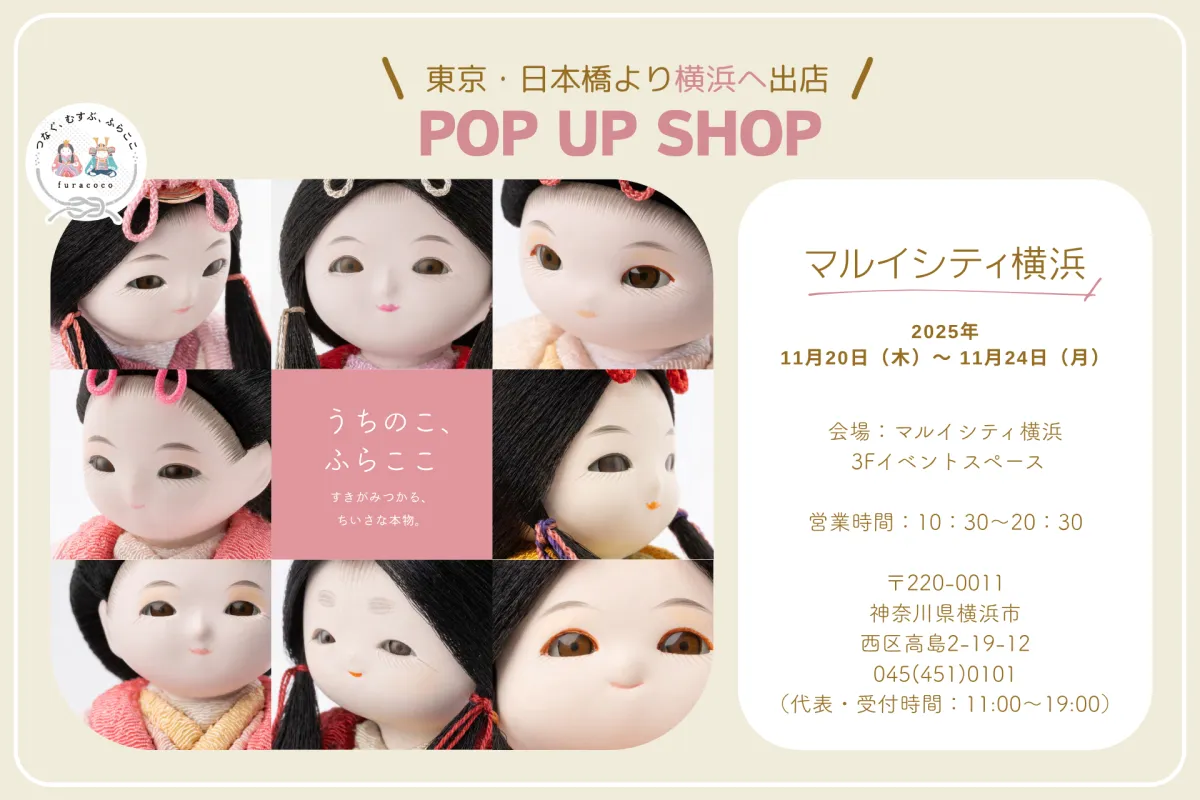 可愛らしい赤ちゃんの顔を持つ雛人形で多くのママから人気を浴びている「ふらここ」が、2025年11月20日(木)から24日(月)まで、マルイシティ横浜のイベントスペースにて、特別な雛人形POP UP SHOPを開催します。このPOP UP SHOPでは、2024年新作の雛人形を中心に、計47アイテムが限定販売される予定です。