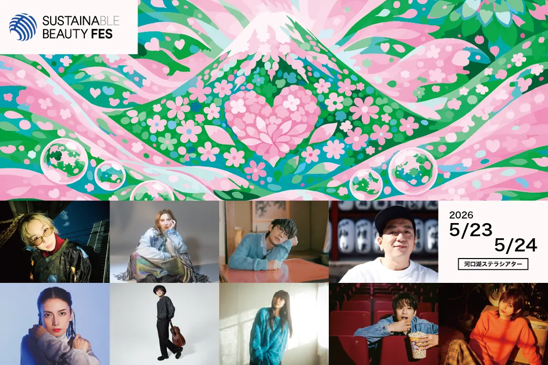 2026年5月23日(土)と24日(日)、山梨県の河口湖ステラシアターにて、柴咲コウが総合プロデューサーを務める新たな音楽フェス「サステナビューティーフェス2026」が行われます。本イベントは、「LIGHTING THE WORLD WITH SPARKS」をテーマに設計されたキービジュアルを発表し、色鮮やかで楽しさを感じさせる雰囲気を打ち出しました。