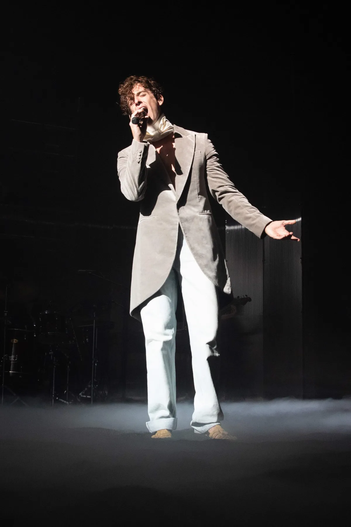彼女が選んだのは、グレーのコットンベルベット製ピークドラペルのモーニングスーツ。その優雅なデザインは、ギタリの個性を際立たせつつも、ディオールの洗練された美しさを見事に表現しています。このスーツは、自信に満ちた彼女の姿を強調するだけでなく、クラシックなエレガンスも漂わせました。