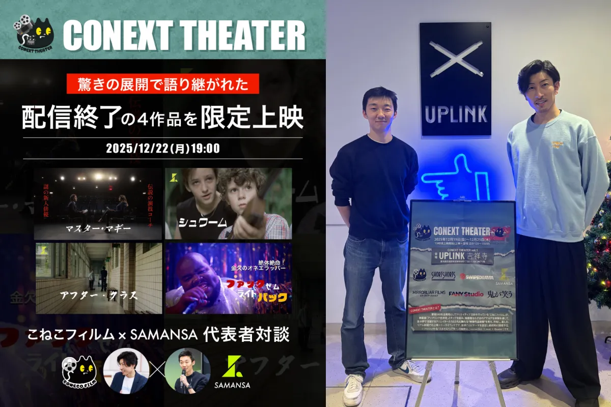 2025年12月22日、アップリンク吉祥寺にて特別な上映会が開催されました。ショート映画配信サービス『SAMANSA』の共同代表・遠山孝行氏とクリエイター集団「こねこフィルム」のプロデューサー・三野博幸氏が出演し、映画体験の意義と向き合うイベントが行われました。この対談は、デジタルとリアル、情報と描写といった相反する要素を行き来しながら、映像エンターテインメントの新たな可能性を探るものでした。