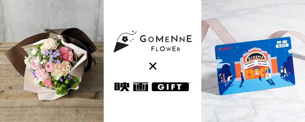 様々な旬の花を使用したSサイズのおまかせ花束と、映画GIFT 2,000円分カードが2枚(合計4,000円分)がセットになります。