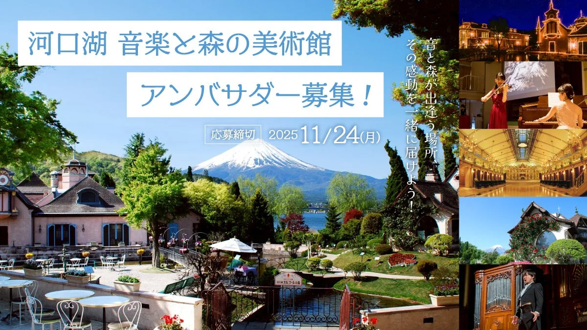 富士山の絶景を背景に位置する「河口湖 音楽と森の美術館」では、ただいまアンバサダーを募集中です。このプロジェクトは、特別な美術館での経験を通じて、みなさんが得た感動をSNSやブログを通じて広めてもらうことを目的としています。募集期間は2025年11月10日から11月24日まで。アートや音楽、そして美しい景色が好きな方をお待ちしています。