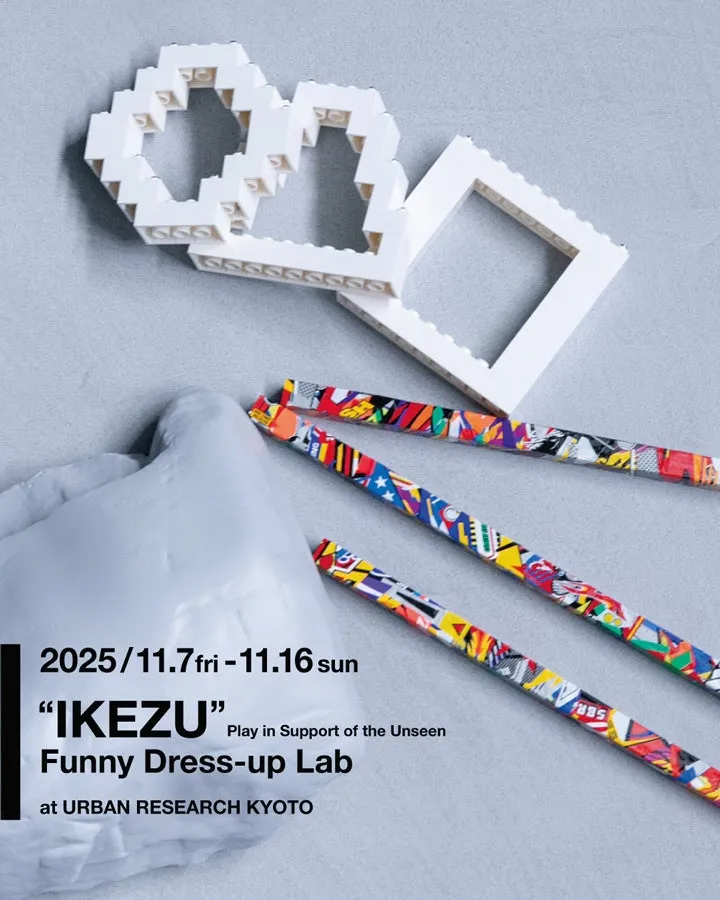 2025年11月7日(金)から11月16日(日)まで、URBAN RESEARCH KYOTOにおいてFunny Dress-up Labの個展「“IKEZU” Play in Support of the Unseen」が開催されます。この特別な展覧会では、京都のユニークな文化や歴史が息づく立体アート作品が数多く展示されます。