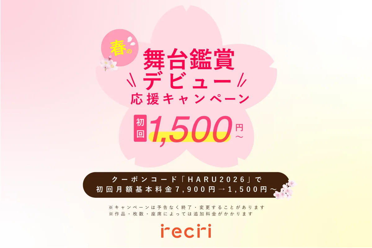 春は新たな趣味に挑戦するのにぴったりな季節です。そんな中、株式会社recriが運営する「チケットのサブスクrecri」が、舞台鑑賞を気軽に体験できる特別キャンペーンを実施します。この春分の日に合わせた「春の舞台鑑賞デビュー応援キャンペーン」は、2026年3月20日(金・祝)から4月12日(日)までの期間、新規登録された方を対象に、初回月額基本料金が特別割引されるというものです。
